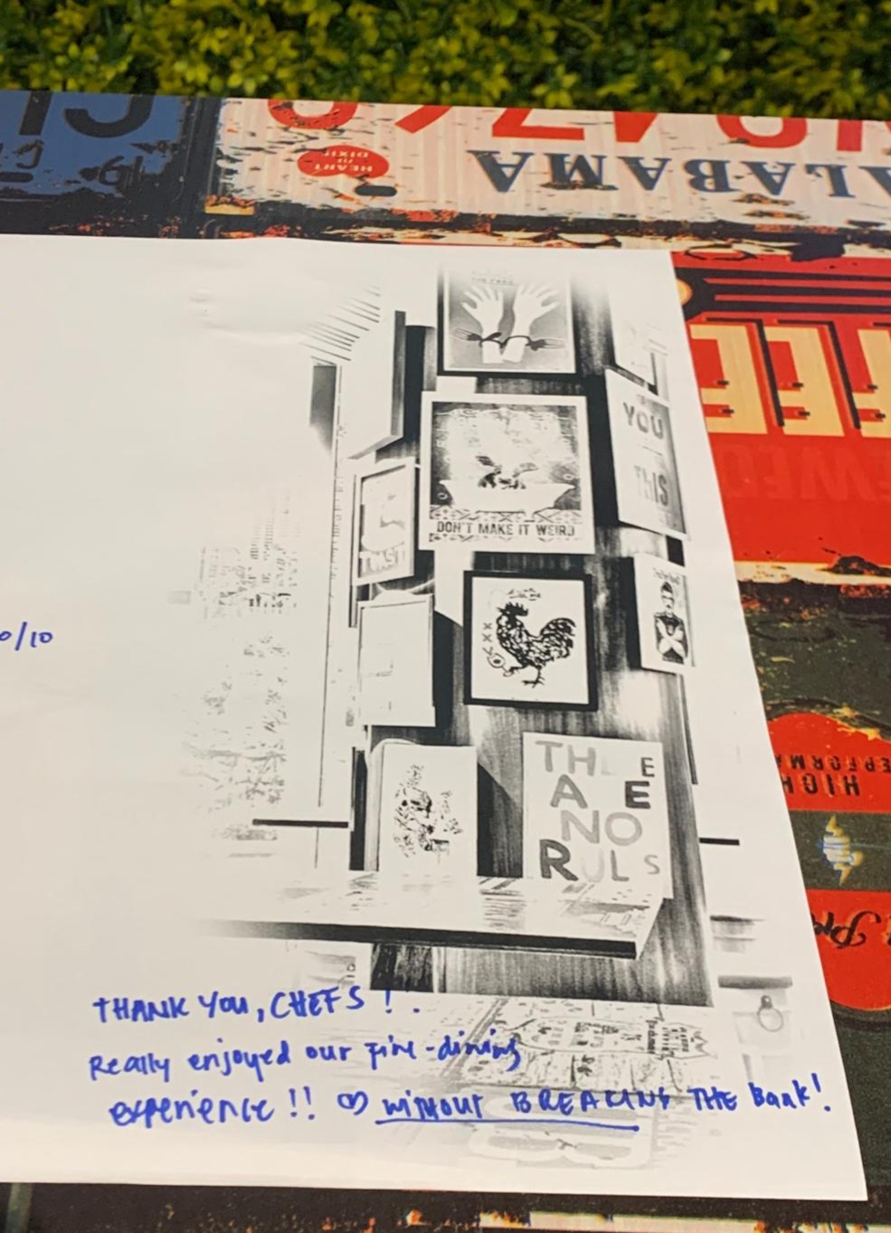 A keepsake memento signed with warmth by our team — a tangible reminder of the unforgettable night, ready to be cherished long after the last toast.